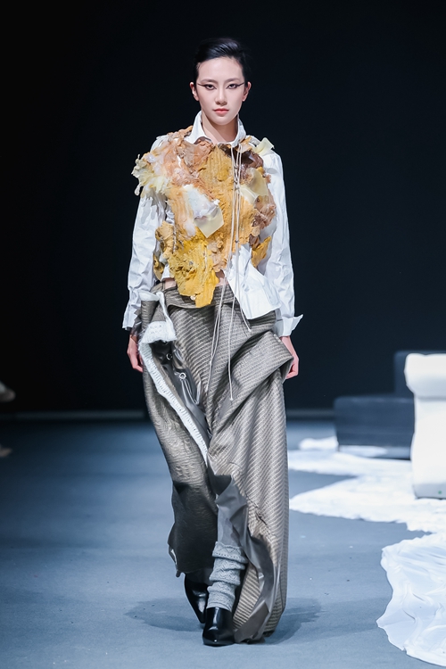 展演結(jié)束后,現(xiàn)場觀看的中國服裝設(shè)計師協(xié)會副主席武學凱指出,創(chuàng)意與市場是相輔相成的雙生火焰——通過構(gòu)建學研用協(xié)同機制,讓先鋒設(shè)計在生活場景與用戶畫像的限定框架中迸發(fā)靈感,將天馬行空的概念轉(zhuǎn)化為兼具審美價值與商業(yè)生命力的作品,這正是設(shè)計從驚艷到落地的必經(jīng)之路。