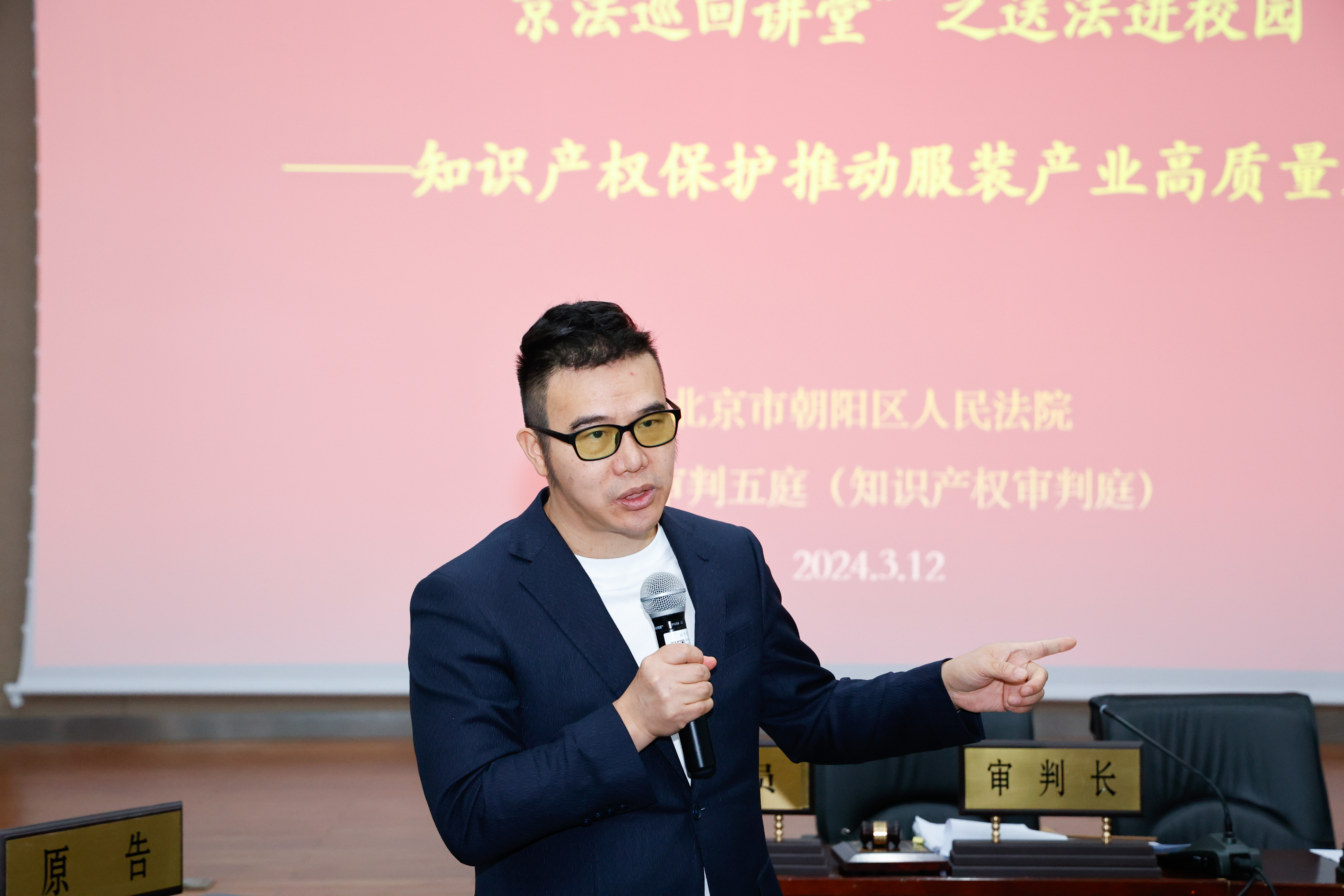 為加強學校法治宣傳教育,提高師生知識產權保護意識,3月12日下午,北京服裝學院與朝陽區人民法院在櫻花園校區藝術樓二層報告廳共同開展“巡回審判進校園”活動。