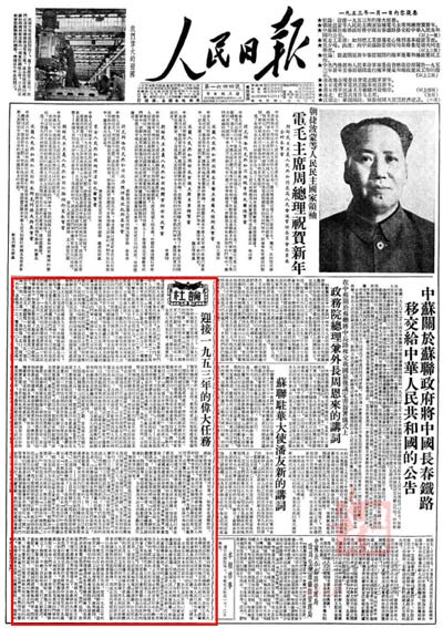 1953年1月1日《人民日?qǐng)?bào)》頭版刊登元旦社論《迎接一九五三年的偉大任務(wù)》