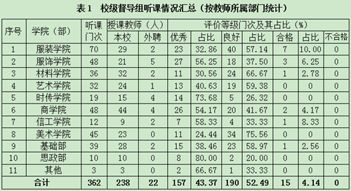 2018-2019學(xué)年第二學(xué)期,校級(jí)教學(xué)督導(dǎo)組7位成員深入教學(xué)一線,共計(jì)聽(tīng)課362門次,覆蓋10個(gè)二級(jí)學(xué)院(部)的257名教師和其他部門的3名教師。其中本校教師238名,外聘教師22名,詳見(jiàn)下表。