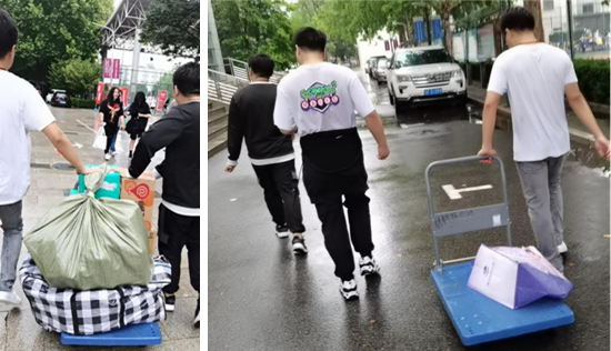 志愿者來回幫助新生搬運行李