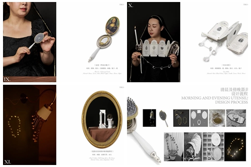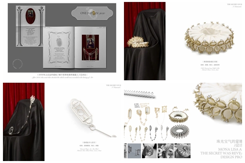 她構思出了一個“世俗化”的蒙娜麗莎,區別于達·芬奇作畫時注重還原“人”本身的理念,孫匯澤用更多符合蒙娜麗莎原有身份的珠寶首飾,牽著她走出畫框,站在我們每個人面前。用寫故事的手法,想象、還原了屬于蒙娜麗莎的珠寶首飾與器物。