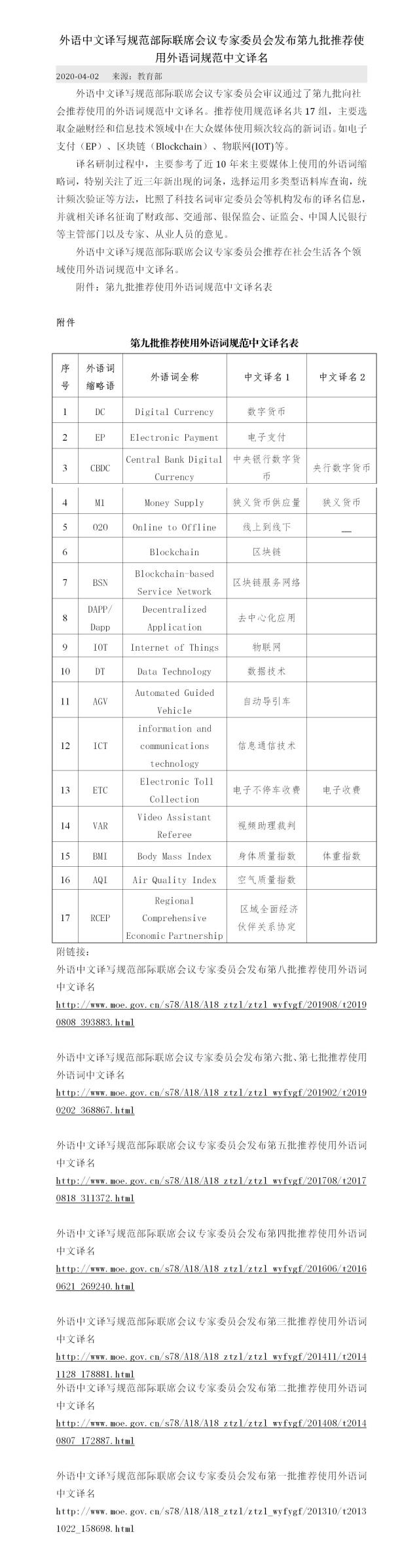 - 外語(yǔ)中文譯寫規(guī)范部際聯(lián)席會(huì)議專家委員會(huì)發(fā)布第九批推薦使用外語(yǔ)詞規(guī)范中文譯名