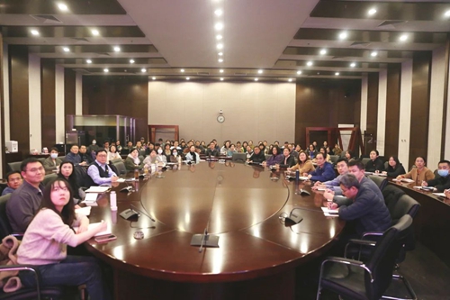 黃克瀛作動(dòng)員講話,她強(qiáng)調(diào),希望全校師生黨員從輔導(dǎo)報(bào)告中悟規(guī)律、明方向、學(xué)方法、增智慧,積極回應(yīng)黨和國(guó)家對(duì)新時(shí)代高等教育的新要求,堅(jiān)守為黨育人、為國(guó)育才初心,堅(jiān)定擔(dān)起學(xué)校在新時(shí)代教育強(qiáng)國(guó)建設(shè)中的新使命,深化辦學(xué)特色,以新校區(qū)建設(shè)為契機(jī),緊密結(jié)合學(xué)校實(shí)際,以發(fā)展的眼光、改革的思維,全面貫徹落實(shí)尹力同志指示精神,凝心聚力搶抓學(xué)校發(fā)展機(jī)遇,努力探索“產(chǎn)城學(xué)”融合發(fā)展的辦學(xué)模式,加快構(gòu)建與產(chǎn)業(yè)統(tǒng)籌融合發(fā)展的育人新格局,不斷完善高水平時(shí)尚創(chuàng)新人才培養(yǎng)體系,在面向國(guó)家需要、首都發(fā)展、行業(yè)需求和人民期盼中彰顯北服擔(dān)當(dāng)。