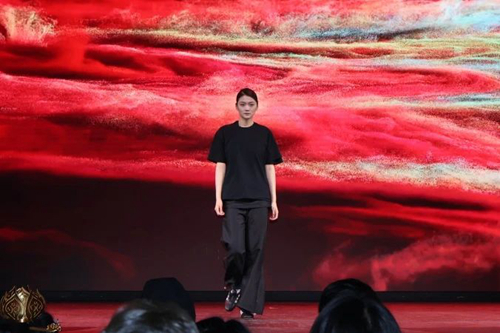 活動中,北京服裝學院時尚傳播學院21位表演專業學生化身“敦煌使者”,以動態走秀形式向中外賓客展示了60套傳統和現代結合的服裝,生動詮釋了敦煌色彩的千年文化之美。所展示的服裝服飾融合敦煌壁畫元素,色彩絢麗,紋樣精致,帶領賓客穿越時空,領略敦煌文化的璀璨風華。