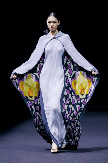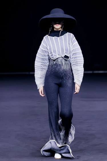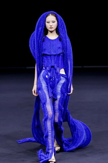 本場展演作品圍繞“織間”主題,意即由針織構(gòu)成的宇宙空間。一針一線交織而成獨(dú)特紋理,如同時(shí)間的細(xì)流編織生命的歷程,展現(xiàn)了針織的無限可能。針織,不只是溫暖可愛的毛線團(tuán)、柔軟垂順的織片,還可以具有雕塑般的力度與立體感,根據(jù)人體溫度、環(huán)境濕度等自動(dòng)調(diào)節(jié)顏色和形態(tài)功能。此次展演的作品既體現(xiàn)了古老神秘的民族風(fēng)情、靈動(dòng)自然的稚嫩童趣,更有充滿未來科技感的自由率性。