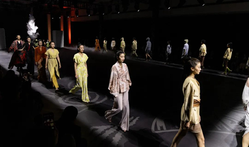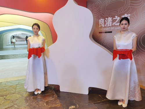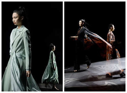 此外,為向參加“良渚論壇”的83個國家共84位藝術家介紹良渚文化遺產,將良渚生活美學體系與時代因素、社會潮流相結合,以良渚文明藝術語言、設計語言與世界文明共鑒對話,11月24日,“良渚論壇”組委會舉辦歡迎晚宴、藝術交流展示等系列活動。由北京服裝學院楊慧、王藝璇、顧遠淵等組成的師生設計團隊完成的“良渚文化色彩研究暨設計成果展示秀”受邀參加“良渚之夜”藝術展示活動,以“拂曉之前”“文明初生”“時光虛河”“流轉節序”“良渚色彩”“美好共興”六個章節呈現了一場以良渚色彩為主題的服裝數字沉浸式大型秀演,生動描繪了中華傳統美學與現代時尚生活聯結的無限可能。