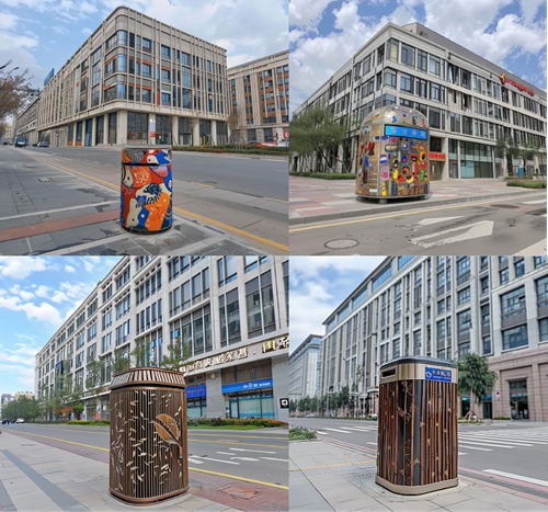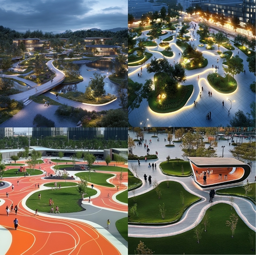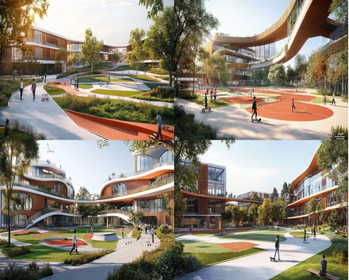 第一組以"經緯"為主題,巧妙融合北服特色、可持續生態理念及人文情感,深入分析重點區域建筑和場地,創新性地將五種材料與五種感官體驗相結合,通過多元色彩交織,塑造出獨特校園氛圍。設計團隊運用AIGC數字技術進行圖像生成和優化,直觀呈現新校區的蝶變愿景。