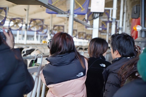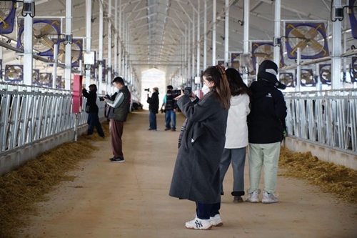 在創(chuàng)作時,師生了解到平谷區(qū)峪口鎮(zhèn)圍繞奶業(yè)面臨的關(guān)鍵問題,當(dāng)?shù)匾劳袊摇笆奈濉敝攸c研發(fā)計劃、北京市科委項目、數(shù)字農(nóng)業(yè)技術(shù)體系北京市創(chuàng)新團隊平谷綜合試驗站項目等,重點開展“奶牛工廠化技術(shù)集成及高效飼養(yǎng)關(guān)鍵技術(shù)的研發(fā)與示范”“奶牛場數(shù)智化技術(shù)集成與示范”等科研工作。