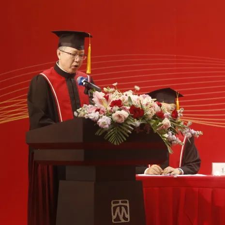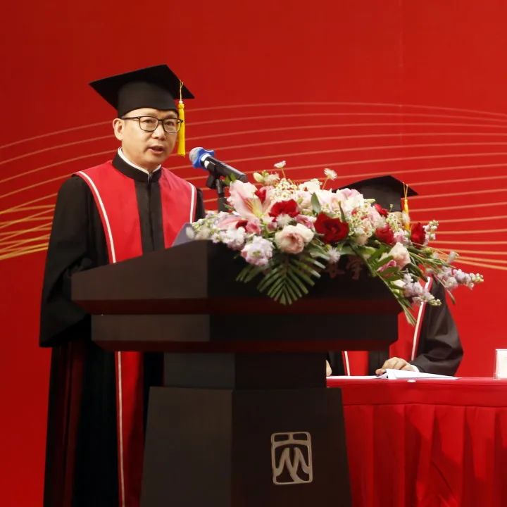典禮最后,院長賈榮林教授為畢業生們送上殷殷囑托和深深祝福。他向畢業生圓滿完成學業表示祝賀,向辛勤付出的老師和畢業生親友,表示衷心的感謝!他首先回顧了學校幾年來在“以藝為主,服裝引領,藝工融合”的辦學特色下,建設高水平特色型大學所取得的成績,這是屬于每一個北服人的榮光!面對百年變局和疫情交織的復雜形勢,他向畢業生提出三點希望:一是變中求進,堅定信心;二是志存高遠,追求卓越;三是自律自省,愛人愛己。賈榮林院長希望畢業生們繼承和發揚北服學子奉獻國家、勇擔重任、與美同行的光榮傳統,不斷追求美、發現美、創造美和傳播美,堅持德智體美勞全面發展,努力成為可堪大用、能擔重任的棟梁之才!
