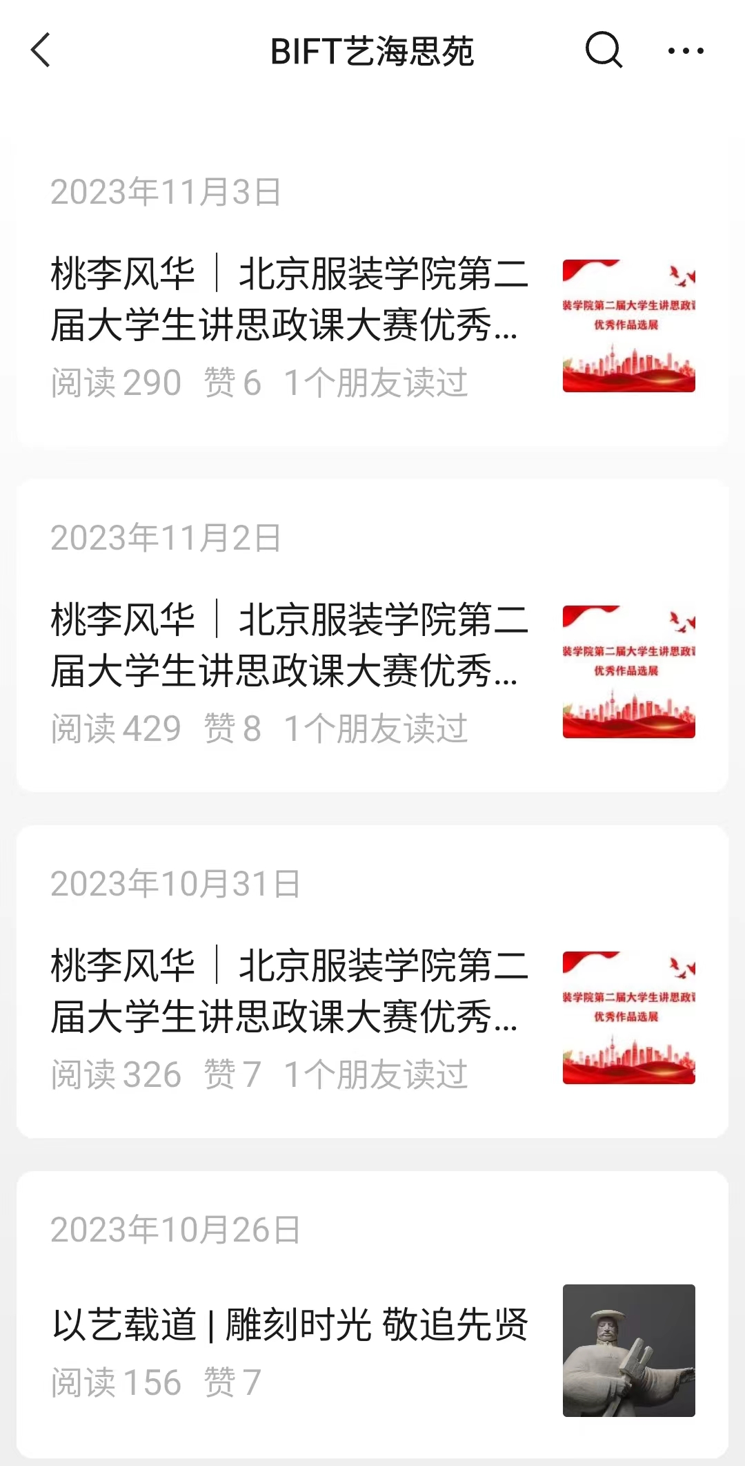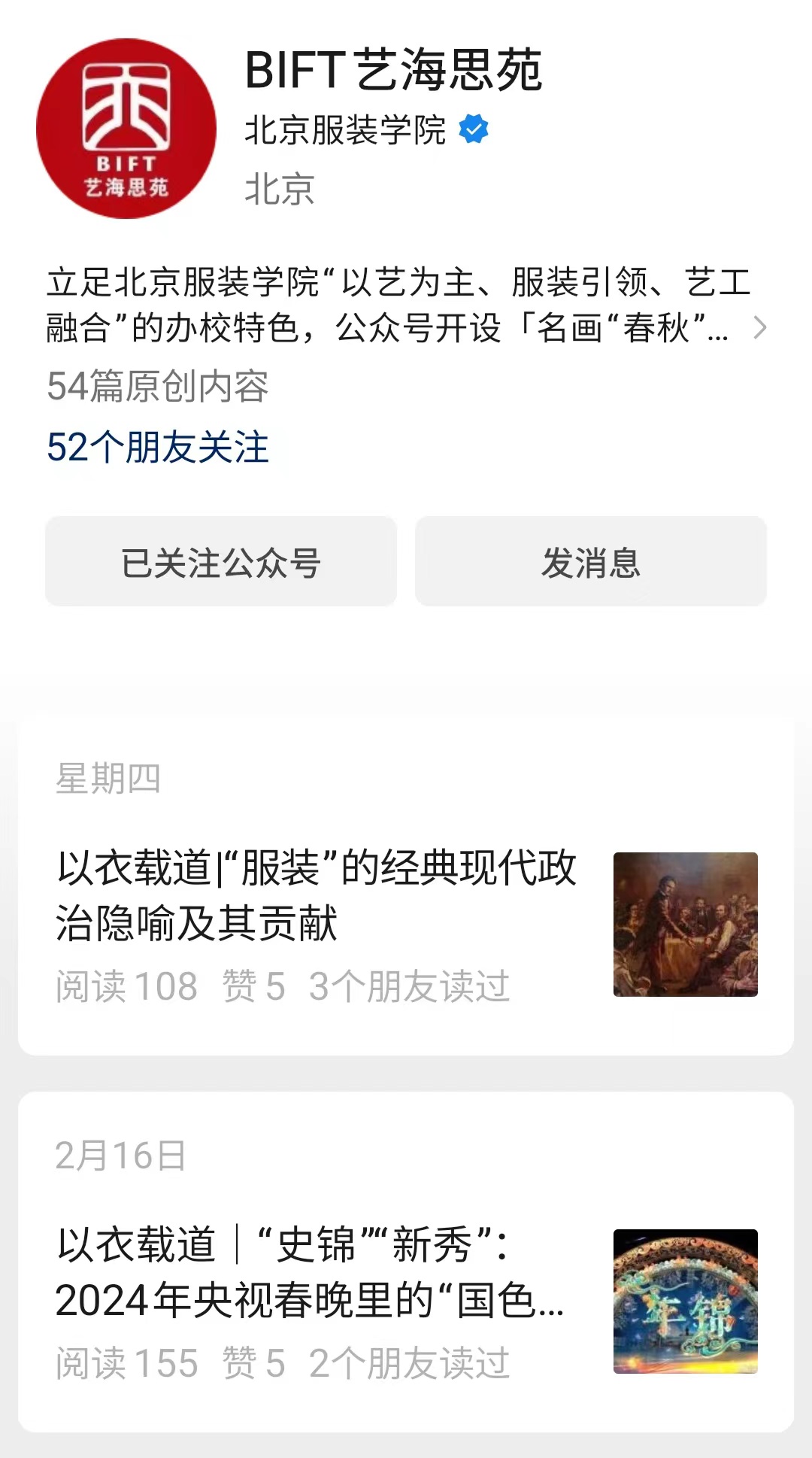 積極加入學校新媒體矩陣,在“北京服裝學院課程展覽”平臺在線展出實踐教學優秀作品;“BIFT藝海思苑”微信公眾號上線,定位“藝術思政”,以信息技術助力獨特的視覺表達,展現北服學子的思想視野和“為人民而設計”的信念,著力打造時尚黨建、思政教育新載體。