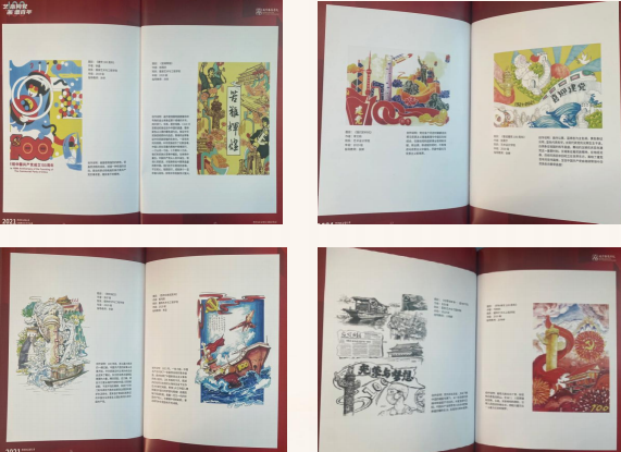 統籌思想政治理論課實踐教學,及時把握時政熱點,圍繞中華人民共和國成立70周年、中國共產黨成立100周年等大事要事,以“藝心向黨 畫譜百年”“衣尚鄉村 勞動最美”“在黨的旗幟下”等為主題,指導學生以繪畫、攝影、雕塑、微視頻等多種藝術表現形式提交實踐作業,引導學生將理論知識、創新設計、家國情懷融入作品,用筆墨丹青捧出莘莘學子“青春向黨”的炙熱情懷,感悟專業學習助力民族復興的使命擔當。學生進行藝術創作的過程即德育和美育交融的過程,是知識傳授、能力培養、價值引領相統一的過程,是塑造知情意行和諧發展健康人格的過程。