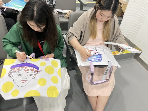本次工作營活動下半場為再生環(huán)保包的手繪創(chuàng)作,由美術(shù)學院李棟副教授親臨指導。此次用到的環(huán)保包袋由社責辦提供,其材料來自于廢棄的展會吊旗,全部回收自國內(nèi)的大型紡織展會。這些材質(zhì)本身結(jié)實防水,戶外使用壽命可達3年以上。往往只展示幾天,就在展會結(jié)束后成為被廢棄的垃圾。為此,從去年開始,中國紡聯(lián)社責辦將吊旗回收,融合創(chuàng)意設(shè)計,將其再生為個性獨特的環(huán)保包袋。這一次,連同展會物料循環(huán)計劃,一同走進北服。