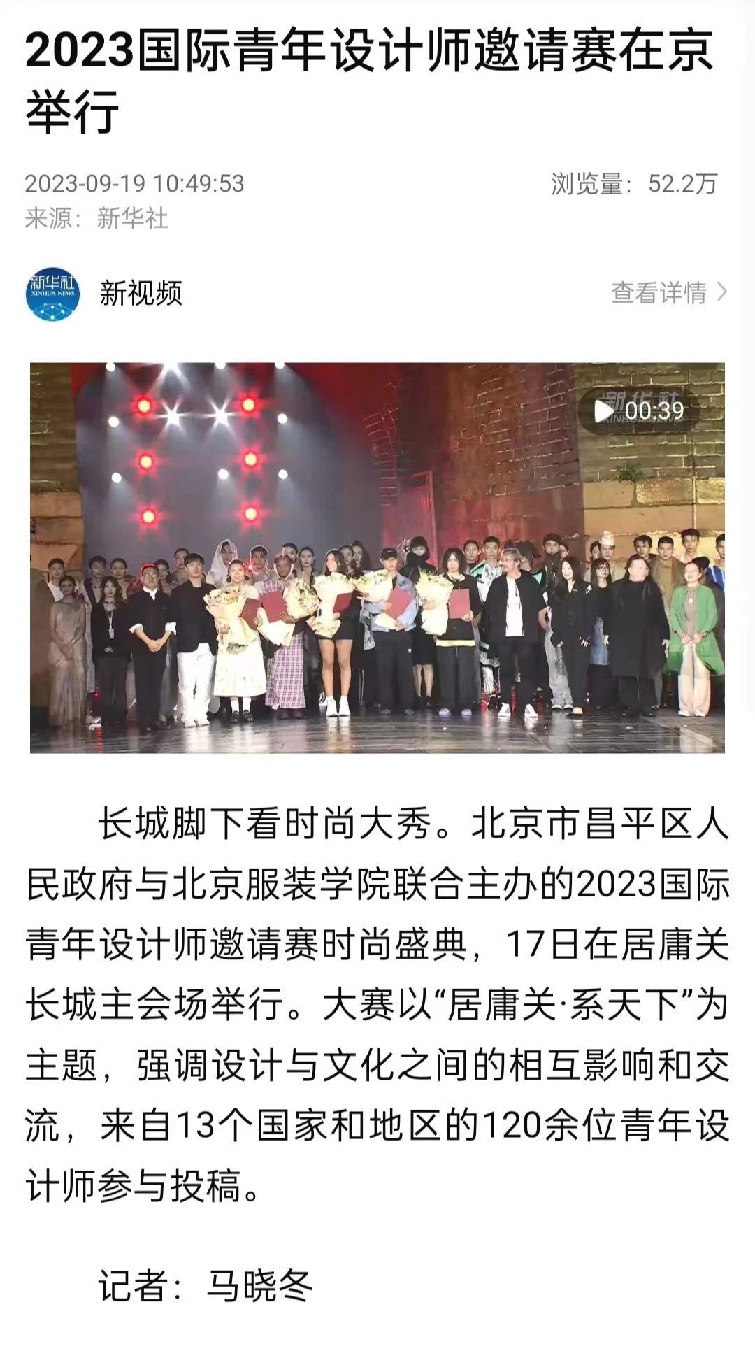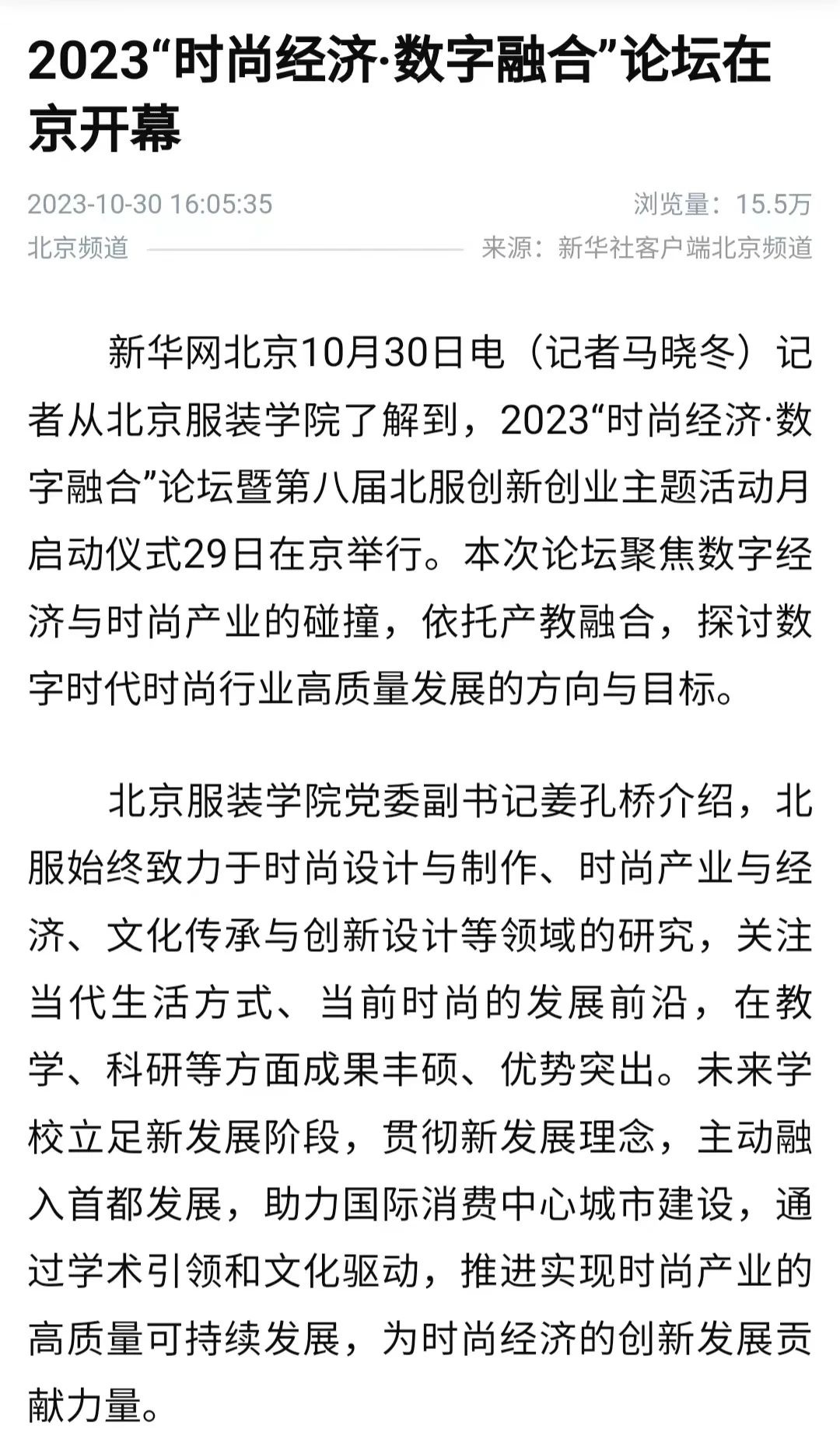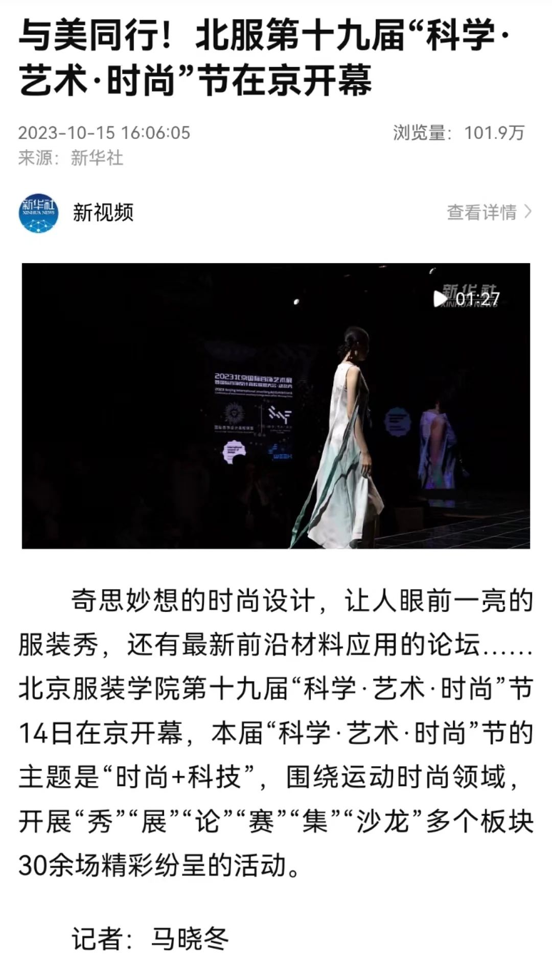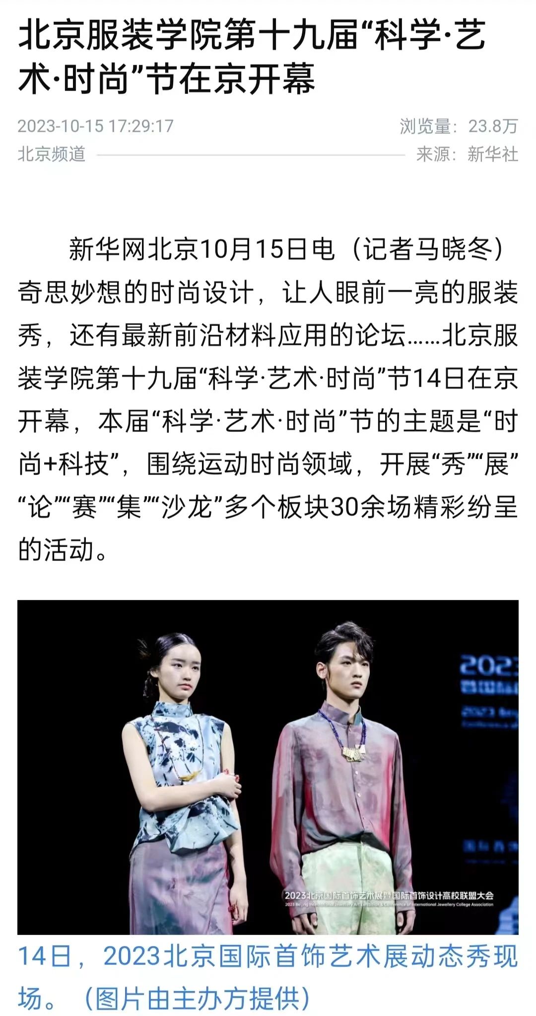 新華社客戶端10月15日播出《與美同行!北服第十九屆“科學·藝術·時尚”節在京開幕》