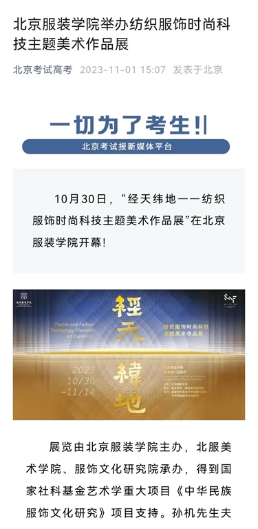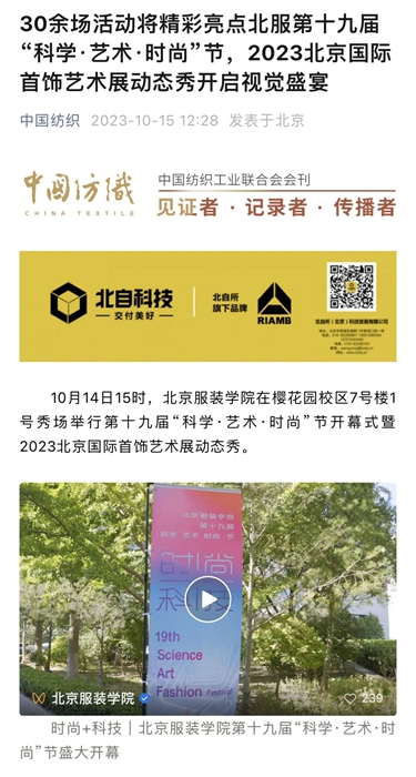 - 聚焦!多家媒體報道北京服裝學院第十九屆“科學·藝術·時尚”節