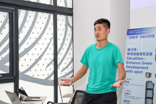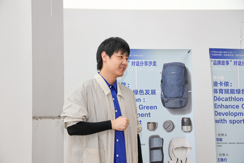 “品牌故事”對話分享沙龍第四期以“迪卡儂:體育賦能綠色發展”(DECATHLON: Enhance the Green Development with Sport)為主題,以迪卡儂活力藍、山野循環綠為主題色,邀請服裝藝術與工程學院助理教授王逸行、商學院助理教授胡詩晨、文理學院體育部副部長盧磊作為對話嘉賓,由國際合作與交流處(國際學院)陸璇擔任主持人。三位對話嘉賓分別結合自身研究領域和職業經歷從迪卡儂品牌作為體育用品零售商、自有品牌設計者和生產者、2024年巴黎奧運會官方合作伙伴等角度對其品牌的設計產品細分、品牌戰略升級、全產業鏈可持續發展、CIS模型對比分析、體育賦能綠色發展等維度展開了對話與分享。在討論環節,主持人、觀眾與嘉賓圍繞品牌在不同國家與地區的營銷策略與消費體驗、服務大型體育賽事等問題展開了多維度互動,最佳提問觀眾獲得了2024年巴黎奧運會吉祥物弗里吉,現場氣氛活躍而熱烈。