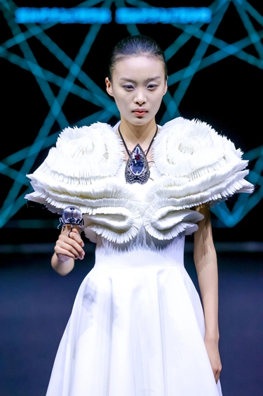 展演中珠寶首飾設計專業方向作品以“多維創新”為關鍵詞,展現了畢業生們對新科技的探索、對傳統技藝的精研,讓首飾以獨特形式與身體交互,呈現出文化多元的魅力。