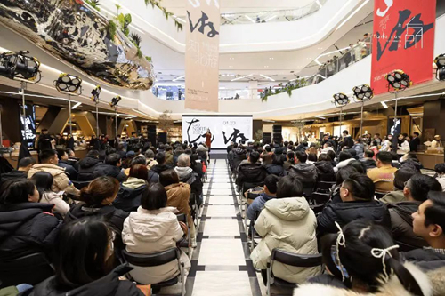 開業(yè)儀式后,在場(chǎng)嘉賓共同欣賞中國(guó)原創(chuàng)設(shè)計(jì)品牌“例外”2024“大觀·定覺”主題服裝發(fā)布。