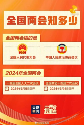 3月4日下午3時,全國政協(xié)十四屆二次會議在人民大會堂開幕,十四屆全國人大二次會議將于3月5日召開。關于全國兩會,您了解多少?讓我們一起通過下圖學習關于兩會的知識吧。