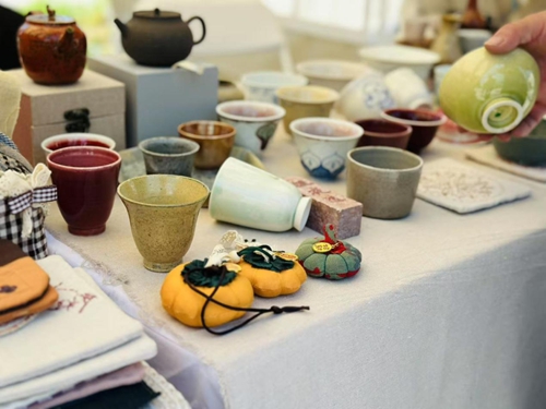 市集展售作品超千件,作品涉及服裝服飾、箱包皮具、布藝玩偶、瓷器陶器、文玩手辦、繪畫擺件等眾多品類,琳瑯滿目的原創作品吸引了眾多消費者。