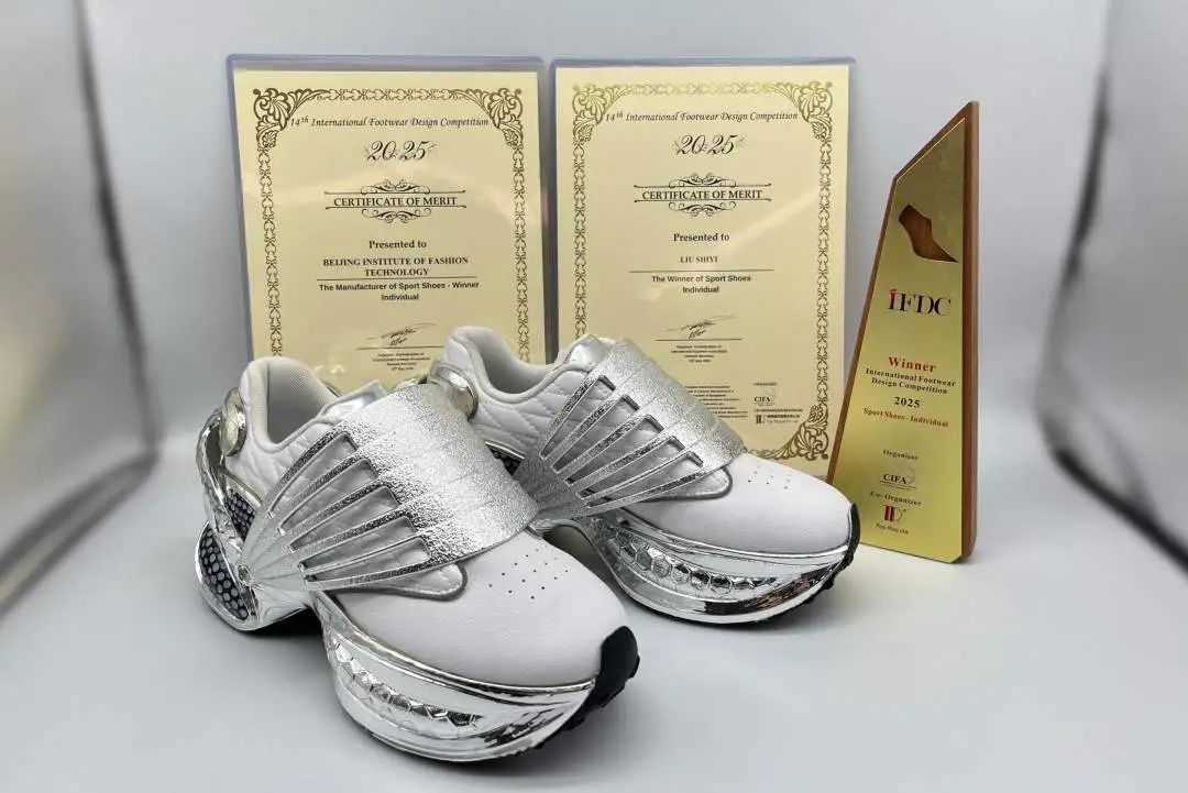 近日,第十四屆國際鞋款設(shè)計(jì)比賽(IFDC)頒獎典禮舉行。大賽由“國際鞋業(yè)大會IFC”全體組織成員聯(lián)合舉辦,是一項(xiàng)旨在推動業(yè)界產(chǎn)品設(shè)計(jì)水平、發(fā)掘和培育優(yōu)秀設(shè)計(jì)人才,并為各地鞋類設(shè)計(jì)師提供高層次舞臺的國際比賽。秉承“設(shè)計(jì)推動行業(yè)發(fā)展”理念,參賽作品主要由國際鞋業(yè)協(xié)會聯(lián)合會各成員國和地區(qū)選送,評委由各成員國和地區(qū)協(xié)會推薦。北京服裝學(xué)院服飾藝術(shù)與工程學(xué)院同學(xué)劉士奕作為中國大陸地區(qū)唯一獲獎選手,作品《鏡光漾步》斬獲運(yùn)動鞋組金獎;北京服裝學(xué)院獲得“運(yùn)動鞋類承制單位金獎”榮譽(yù)稱號。