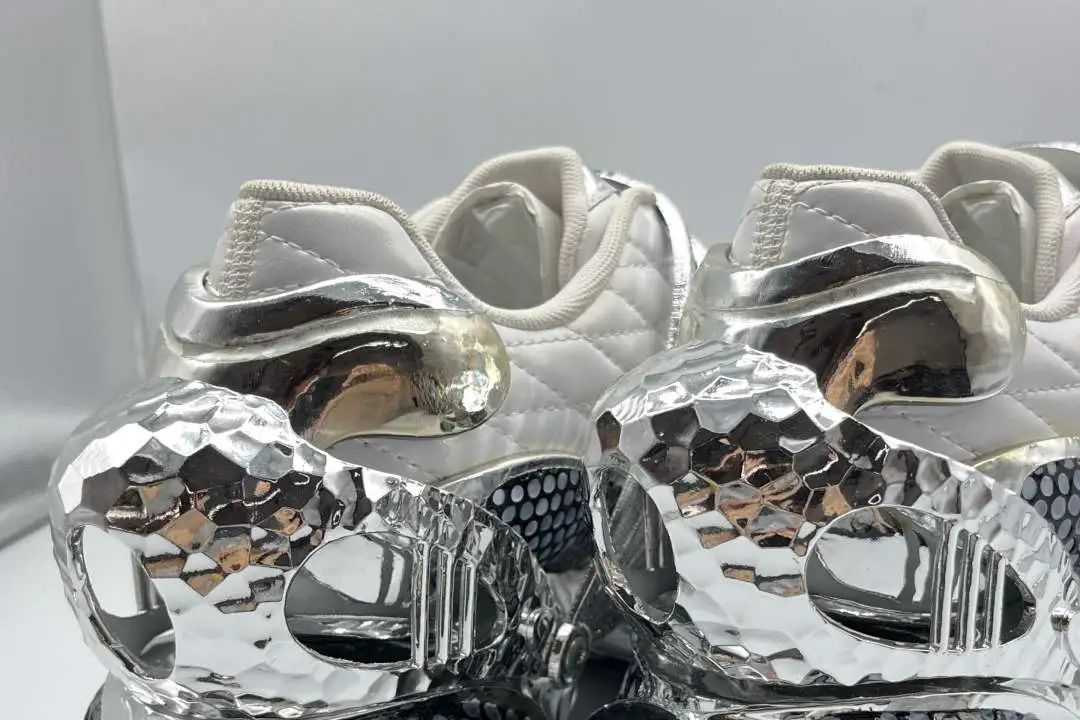 設(shè)計(jì)說明:本系列以“鏡光漾步”為主題,探索光與影、自然與現(xiàn)代的和諧共存,為穿著者提供都市與自然間輕松漫步的體驗(yàn)。設(shè)計(jì)采用高反光材質(zhì),模擬光線在水面的流動,兼具科技感與自然美。色彩融合城市現(xiàn)代感與自然景觀,營造輕松視覺。細(xì)節(jié)注重流暢線條與動態(tài)美,從鞋舌曲線到鞋底紋理,兼顧功能性與藝術(shù)感。該系列不僅是對時尚的探索,更是對都市中自然元素的致敬。