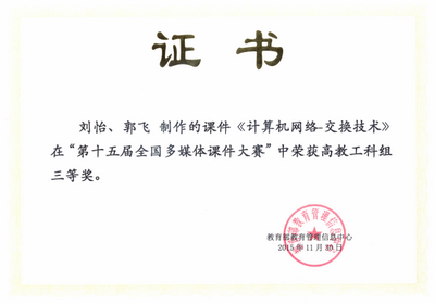 大賽分為課件組和微課組兩個組別,從大賽啟動至作品上傳截止歷時6個月。全國共征集到參賽作品6227件,評選出一等獎363件,二等獎1081件,三等獎2140件。我校共有6件作品參賽,均獲得了獎項。其中計算機信息中心洪穎、修毅、邵熹文老師的《網頁設計》課件獲得高教文科組一等獎;信息工程學院劉怡、郭飛老師的《計算機網絡-交換技術》課件獲得高教工科組三等獎;基礎教學部候志萍老師的《定積分在幾何中的應用-求旋轉體的體積》獲得微課組三等獎;外語系李傲君、計算機信息中心杜運慶、信息工程學院劉怡、范秀娟等老師的作品獲得了優秀獎。我校教師在本次大賽中取得了優異的成績,獲獎作品不僅凝結了參賽教師的辛勤汗水,更彰顯了我校現代教育技術的應用水平。