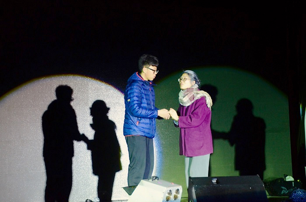 接下來的節(jié)目異彩紛呈:老歌合唱《大約在冬季》仿佛讓觀眾穿梭時(shí)光,一起走進(jìn)那單純、美好又令人無限向往的舊時(shí)光里;啦啦操舞蹈表演《Timber》婀娜多姿、青春動(dòng)感,淺粉色的衣裙如展翅的蝴蝶,飄飛在流光溢彩的舞臺(tái)之上,寄托了北服學(xué)子對(duì)新一年的祝福與展望;小品《兄弟別鬧》在讓人忍俊不禁的同時(shí),展示出同窗間那份深深的友誼,給觀眾帶來了視覺沖擊和聽覺震撼;北校區(qū)中國傳統(tǒng)文化社的女孩們將精美的古裝華服與醉人的古典樂器相結(jié)合,踏歌而舞,為觀眾帶來一曲古典舞蹈,古樸的漢服,優(yōu)美的身姿,帶領(lǐng)觀眾身臨“起舞踏春弄朝歌”的場(chǎng)景之中;歌舞劇《Monica》用幽默風(fēng)趣的舞姿將一首首90年代的粵語歌曲組合串燒,為現(xiàn)場(chǎng)觀眾帶來一場(chǎng)聽覺的盛宴;歌曲串燒《We Found the Love》,音樂旋律時(shí)而歡快、時(shí)而舒緩,躍動(dòng)的音符縈繞在現(xiàn)場(chǎng)的每一個(gè)角落,為觀眾帶來夢(mèng)幻般的感受以及青春的朝氣和活力。北京服裝學(xué)院北校區(qū)青年志愿者協(xié)會(huì)的成員在寒冷的冬夜帶來溫暖感人的話劇表演《不孤單》,以常去太陽城慰問孤寡老人們的經(jīng)歷和靈感演繹了這臺(tái)感人至深的話劇,不少觀眾在觀看過程中已經(jīng)被感動(dòng)得落下淚來;街舞表演《西游記》更是別出心裁,動(dòng)感的音樂,酷炫的舞步,北校區(qū)街舞社的同學(xué)們?cè)谖枧_(tái)上揮灑著青春的汗水,釋放激情,張揚(yáng)個(gè)性;跆拳道社帶來了跆拳道表演,各色的腰帶,整齊劃一的動(dòng)作,矯健的身姿使人無法忘懷,描繪了北服學(xué)子的意氣風(fēng)發(fā)與颯爽英姿;相聲《我健哥》幽默風(fēng)趣,動(dòng)作滑稽搞怪,情節(jié)跌宕起伏,引得觀眾們爆笑連連,掌聲不斷;傳統(tǒng)舞蹈《美落子》隨著音樂的流淌,舞者手中的扇子依次打開,如次第綻放的花朵,美妙絕倫,淡雅高貴;大二、大三學(xué)生帶來的小合唱《澎湖灣》用穿透靈魂的聲音,串聯(lián)起一首首膾炙人口的旋律,讓在場(chǎng)觀眾眼前一亮,贊不絕口,大呼“專業(yè)”和“養(yǎng)眼”;朗誦《走進(jìn)新年的暢想》回顧過去一年中北校區(qū)、北京服裝學(xué)院、祖國的發(fā)展與累累碩果,展現(xiàn)了北服學(xué)子對(duì)未來的期望;舞蹈串燒《Young Girls》舞出了學(xué)子對(duì)生活的熱愛,讓整臺(tái)晚會(huì)熠熠生輝;最后的節(jié)目是教職工合唱《我相信》,老師們動(dòng)聽的歌聲將晚會(huì)推向高潮;北校區(qū)主任單兵老師送給北校區(qū)學(xué)子的新年寄語溫馨感人,寄語學(xué)生們?cè)诩磳⒌絹淼?span lang="EN-US">2016年砥礪奮進(jìn),用激情和汗水譜寫夢(mèng)想的新華章。