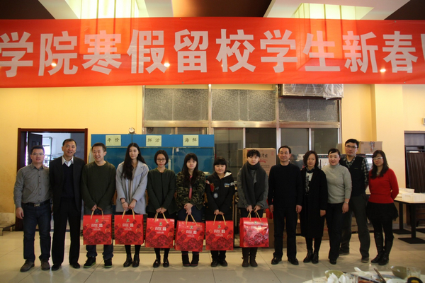 最后,校領導為留校學生代表發了禮盒,祝愿大家紅紅火火過大年。團拜會在熱烈祥和的氛圍中結束了,同學們在北服這個大家庭中感受到了家的關懷與溫暖。