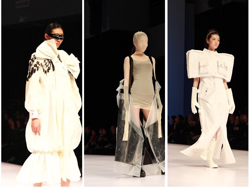 【新聞中心訊】時尚創意組畢業設計作為2016北服時裝周的開幕秀于3月15日下午3點率先登場?;诩磳厴I的新興設計師們對自己未來職業規劃的不同,以及北服女裝專業方向對人才培養的細化和差異化的趨勢,今年女裝設計按創作導向劃分為時尚創意和時尚成衣兩個組別。這場極具創意風格的女裝大秀備受矚目,現場評委由院校教師、跨界藝術家,時尚媒體人士共同組成,169套作品充分地傳達了北服女裝設計的前衛意識和實驗態度,反響極為熱烈。