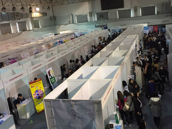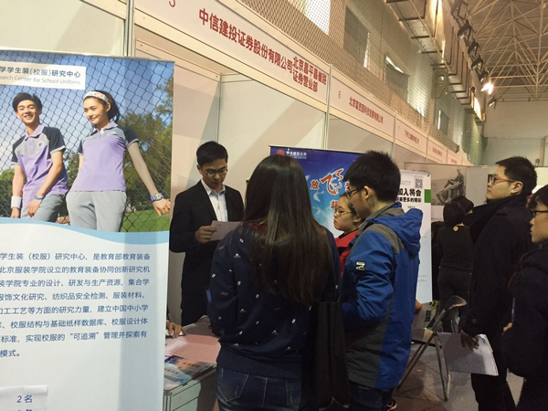 【新聞中心訊】3月31日,北京服裝學院2016屆畢業生與用人單位校園大型雙選會(第四場)在校體育館成功舉辦。ZARA、CK、鄂爾多斯服裝、廣州市上赫服飾、北京百靈天地環保科技股份有限公司、北京奧飛傳媒有限公司、北京工美集團、國信證券、北緯機電技術有限公司、學而思學校、北京恒美瑞文化公司等120家京內外知名企業前來招聘,提供實習、就業崗位2600個。除畢業生積極參加招聘會外,還有大量在校生前來現場觀摩企業招聘,尋求實習實踐機會。