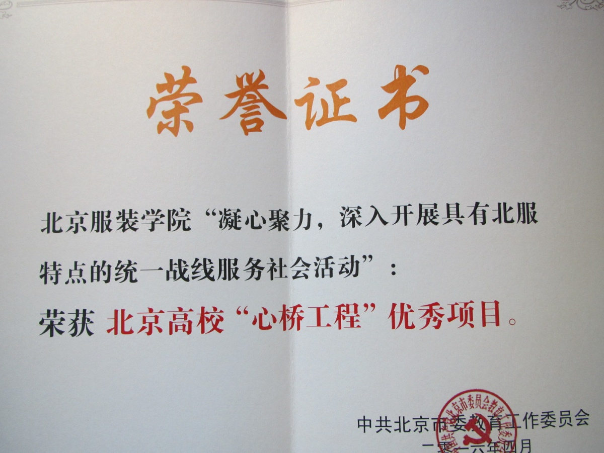 多年來,學校黨委高度重視發揮黨外知識分子在服務社會工作中的作用,在“心橋工程”主題實踐活動中,結合北服特點,圍繞發展,凝心聚力,積極開展統一戰線服務社會活動。我校黨外高級知識分子人數多、在業內影響大,是學校改革發展穩定的一支主要力量,校黨委積極引導他們充分發揮自身的專業優勢,參與服務社會工作,活動中涌現出一批以賀陽老師為代表的黨外知識分子,他們為學校發揮服務社會功能,為首都文化創意產業發展,特別是“時尚之都”建設奉獻著自己的力量。