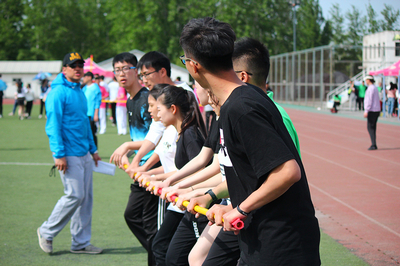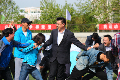 馬勝杰書記隨后宣布:“北京服裝學院第三十八屆學生田徑運動會開幕!”運動會在歡快動感的廣播操、健美操表演中拉開序幕。比賽第一項就是由校領導及各院系教師組隊完成的項目“蛟龍出海”。