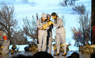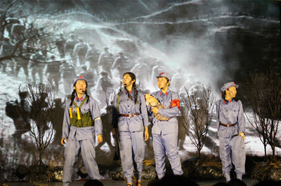 演出中,商學院學生帶來的《征途》首先出場,大家用精湛的演技帶現場觀眾重溫了整個長征的過程:飛奪瀘定橋、強渡大渡河、爬雪山、過草地……一幕幕場景體現出中國紅軍將士不畏艱難困苦、奮勇前行的革命大無畏精神;外語系的《馬蹄聲碎》帶來的是掉隊女紅軍的往昔回憶,激起了弱小身軀內在的生命激情,更喚起了這些處于艱難困苦中的紅軍將士們的無限革命豪情,女性生命的柔弱與長征中所經歷的種種艱險形成強烈對比,深深打動了觀眾;藝術設計學院的《長征,不朽的魂》用極具舞臺效果的演出展現了革命先烈們為長征勝利拋頭顱灑熱血的精神,一幕幕感人至深的畫面感染著在場每一名觀眾;服裝藝術與工程學院的《天籟》中,演員們深情演繹了紅軍劇社的女戰士們用生命和鮮血守護精神家園的感人故事;造型藝術系的《飛奪瀘定橋》則生動地描繪了我們光榮的紅軍隊伍在81年前的那場驚心之戰;材料科學與工程學院的《千里泥潭》,學生演員們用精湛的演技帶領在場的觀眾感受了那艱辛草地中那抹震撼人心的光輝;信息工程學院的《紅心永駐》一劇,選取發生在長征路上的小故事,以小見大,生動地描繪了紅軍戰士堅持信仰、無畏犧牲的心路歷程。