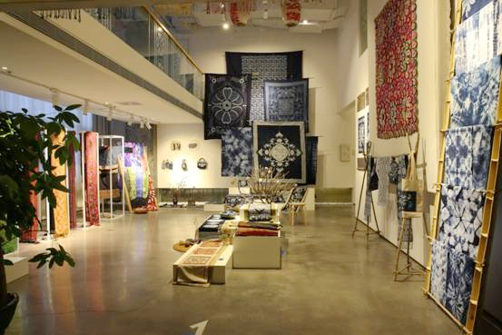 動態秀結束后,項兆倫副部長一行來到天工傳習館觀看非遺傳統印染傳承人群研修班主題為“湛顏·拾遺”的靜態展。傳統印染研修班18名學員的110件作品,分為三大區域兩大類別陳列,展示了印染類作品及織繡類作品。一件件精美的工藝品表達著7個民族的個性特征,風格迥異卻奪目迷人。