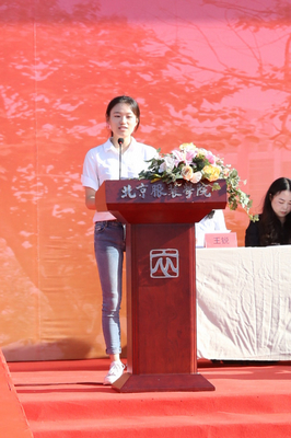 教師代表、國家科技進步獎二等獎獲得者、材料科學與工程學院院長王銳教授也向新生們提出殷切希望:一是學會做人。要老實做人、踏實做事;二是積極向上,傳播正能量。感恩父母、感恩老師、感恩社會;三是做好大學生活規劃,豐富知識結構;四是勤奮學習,努力拼搏。要勇于面對失敗和挫折,北服人也要秉承嚴謹治學的精神。選擇了拼搏與超越,就選擇了輝煌!