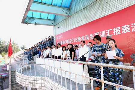 2016級本科生軍訓匯報表演在雄壯的軍歌和熱烈的掌聲中圓滿結束。