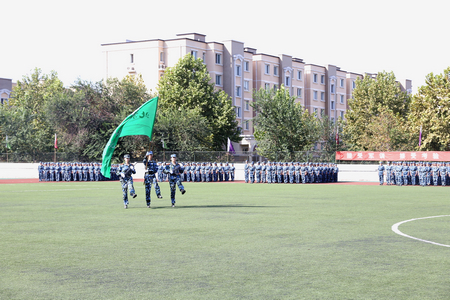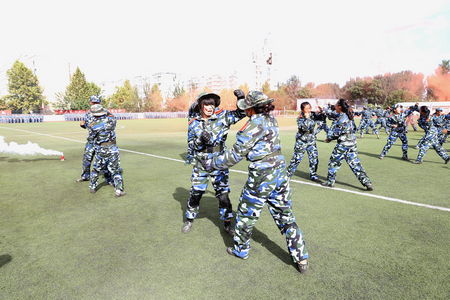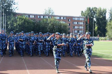 大會在隆重的國歌聲中拉開序幕,劉元風院長在承訓團團長李保華教官的陪同下檢閱了學生方陣。隨后,2016級1397名新生們組成的13個方陣進行了分列式表演,向全院師生展示了十二天的訓練成果。伴著歡呼聲,一支支方隊踏著矯健的步伐,以昂揚的士氣邁步走過主席臺,逐一接受學校領導和承訓部隊首長的檢閱。特訓營作為代表在全體師生面前展示軍人的擒敵拳、端槍表演、火圈表演、戰術與刺殺操等,飽滿的熱情和颯爽的英姿博得了眾人的喝彩。在精彩絕倫的特訓營表演后,英姿勃發的北服學子組成的軍體拳表演方陣,以規范的動作、抖擻的精神充分展現了我校師生團結進取、積極向上的良好精神風貌,贏得了現場師生經久不息的熱烈掌聲。