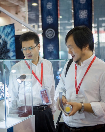 “匠心·拾遺”靜態展則陳列了非遺研修學員的100件作品,分為傳統印染、金屬手工藝兩大類別。前者展示了中國傳統四大防染技藝作品,包括夾纈、絞纈、蠟纈和藍印花布;后者展示了核雕、點翠、花絲鑲嵌、鐵畫等金屬手工藝制品。精細的做工、豐富的形態、古老的技藝被重新煥發活力,一件件精美的工藝品展現著不同民族的個性特征,相互迥異卻都奪目迷人。