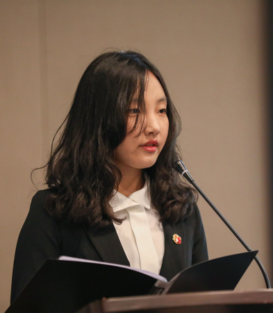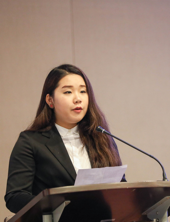 獲獎代表,校團委組織部部長張楚玥、第十七屆校學生會主席陳思言分別代表獲獎代表和新一任學生骨干發言。