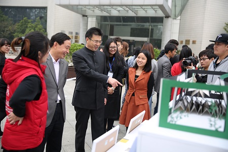 【新聞中心訊】10月15日,由中共北京市委教育工作委員會、共青團北京市委員會聯合主辦,北京服裝學院承辦的“第六屆首都大學生創意集市”隆重開幕。中共北京市團市委副書記郭文杰、北京服裝學院黨委書記馬勝杰、副書記倪賽力等領導出席開幕儀式。