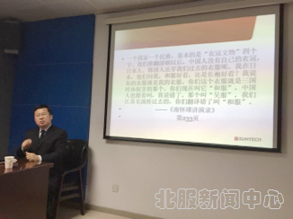 1020日上午,首屆國家教委中英友好獎學金獲得者、外交學院英語系教授武波(研究領域為國學與中國文化英譯以及跨文化傳播)來北服做了有關“中華傳統文化走出去”的學術講座。講座分為三部分內容:一是中國人的世界觀;二是中國人的方法論;三是中國文化走出去的正確途徑。講座信息豐富,深入淺出,旁征博引,結合具體實例,談古論今。在中西文化的對比中,從哲學的高度為師生正確理解中國夢、準確理解中華傳統服飾文化元素,以及思索如何實現中華傳統元素的傳承和發展理清了思路,指明了方向。使學生們對翻譯也有了更深的理解,增強了專業學習的信心。講座持續了3個半小時,在休息間隙,慕名而來的聽眾不斷結合自身的困惑向武教授提問