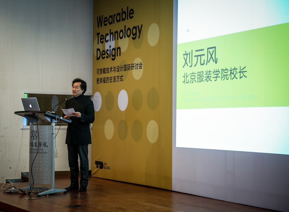 可穿戴技術與設計國際研討會(WTD)”上,北京服裝學院院長劉元風致辭