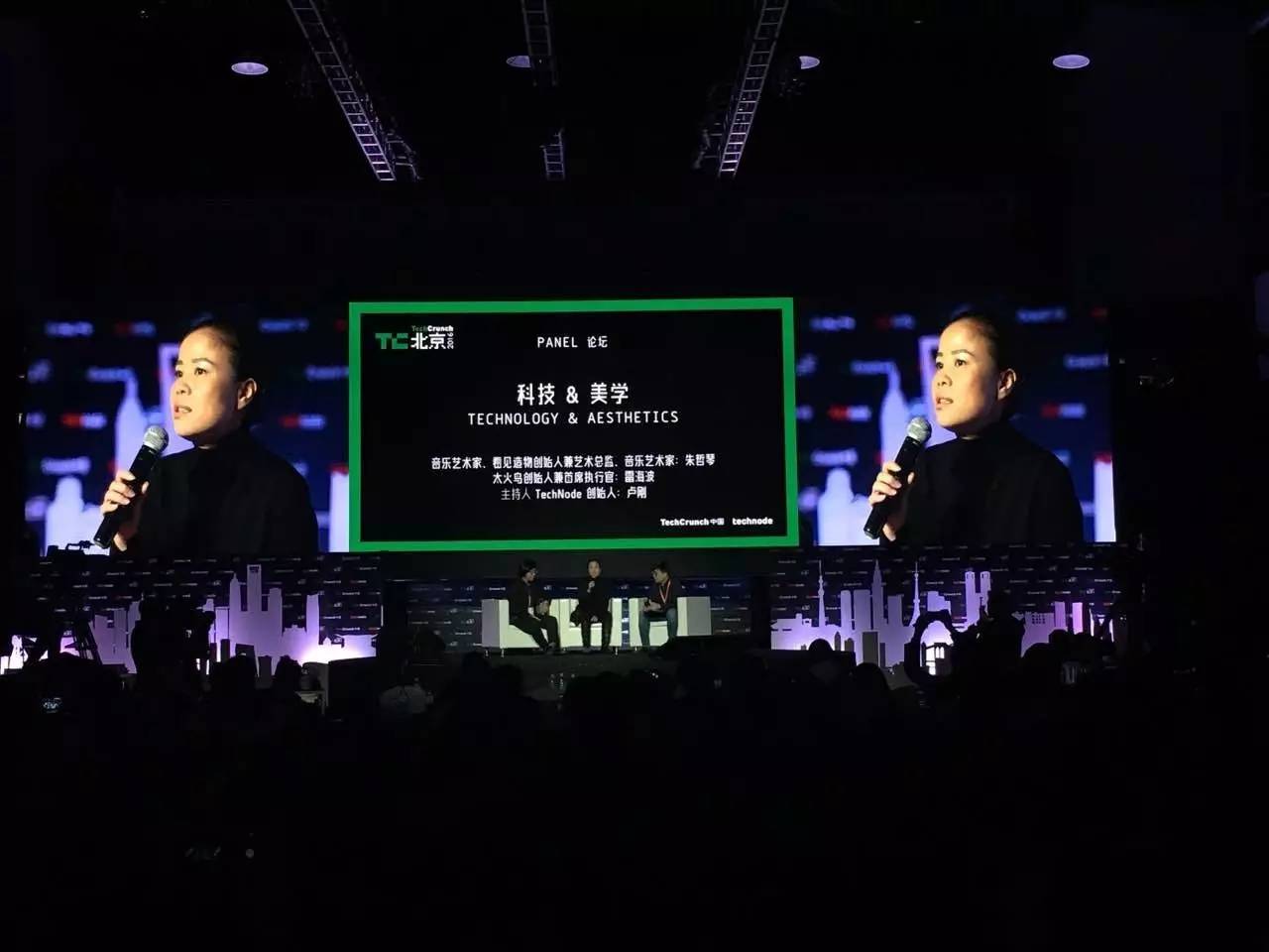 音樂藝術家朱哲琴、太火鳥創始人兼首席執行官雷海波與TechNode創始人盧剛在“TechCrunch國際創新峰會”中對談