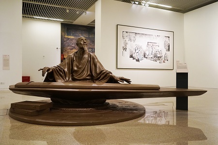 鄧柯老師:創作歷時五年,創作過程其實也是逐步走近這個人物的過程,很艱辛、漫長。尤其是構思階段,怎么切入,如何構圖,手法、語言、形象、空間等方面都需要商榷。于是我開始看書、研究、考察:去了河南沁陽的朱載堉紀念館進行實地考察,與中科院朱載堉研究專家戴念祖先生交流創作細節,與北京服裝學院陳芳教授交流創作中服裝的細節。在此期間,走訪了許多專家學者,并且找了很多關于朱載堉的傳記和研究成果,對朱載堉這一人物的人生經歷、性格品質做了詳細的調研。進而通過這些調查研究來完善這一人物形象,從人物神態、動作以及服飾穿著等方面來塑造最真實的人物。