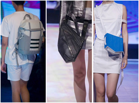 首飾展演風(fēng)格靜謐、舒緩,簡(jiǎn)潔的搭配輔以獨(dú)特的燈光,襯托出首飾的恬美與精致。箱包和鞋品部分的展演,有科技感十足的碰撞,也有精彩活潑、五彩繽紛的幻想。