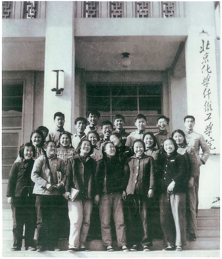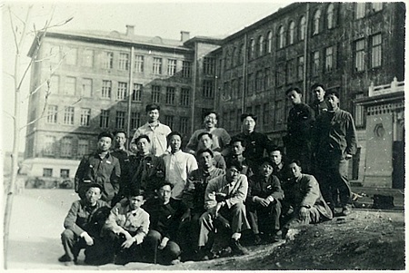 1962年4月化纖15班合影于教學樓前
