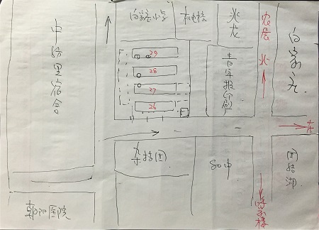 附:郭老師親手繪制的中紡里及定福莊校區地圖