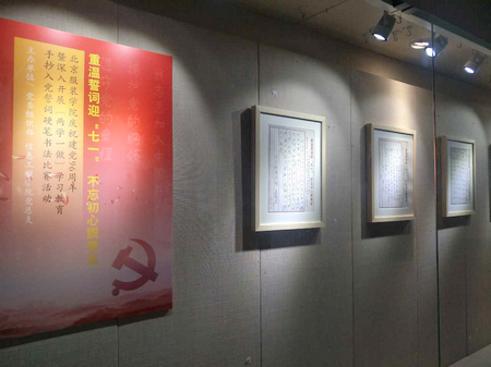 近日,校黨委組織部、信息工程學院黨總支共同舉辦了“重溫誓詞迎‘七一’, 不忘初心跟黨走”慶祝建黨96周年暨深入開展“兩學一做”學習教育手抄入黨誓詞的硬筆書法比賽活動,經積極組織動員,廣大黨員干部踴躍參加,共收到參賽作品近百幅。評審組嚴格按照評比辦法進行評審,選出40幅作品并且在綜合樓一層大廳進行了展示。