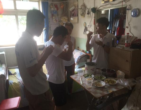 在結束了看望“空巢”老人的活動后,五名實踐小組成員留在了空巢老人李尚云奶奶家里,為李奶奶做了一頓“愛心午餐”。李奶奶今年79歲了,患有糖尿病,高血壓等疾病,實踐小組成員知道這些情況后,特意買了一些低糖,清淡的食材。王琦和康久旭兩名同學為老人精心地做了四道家常菜。李奶奶因為剛換過假牙,每一道菜都只吃了幾口,但對于同學們的廚藝贊不絕口。李奶奶欣慰地說:“大家能來我家吃個飯,陪我聊聊天,比什么都強。你們下次什么時候來,我給你們做一桌我的拿手好菜”。大家聽了這些話都感覺心里暖暖的。